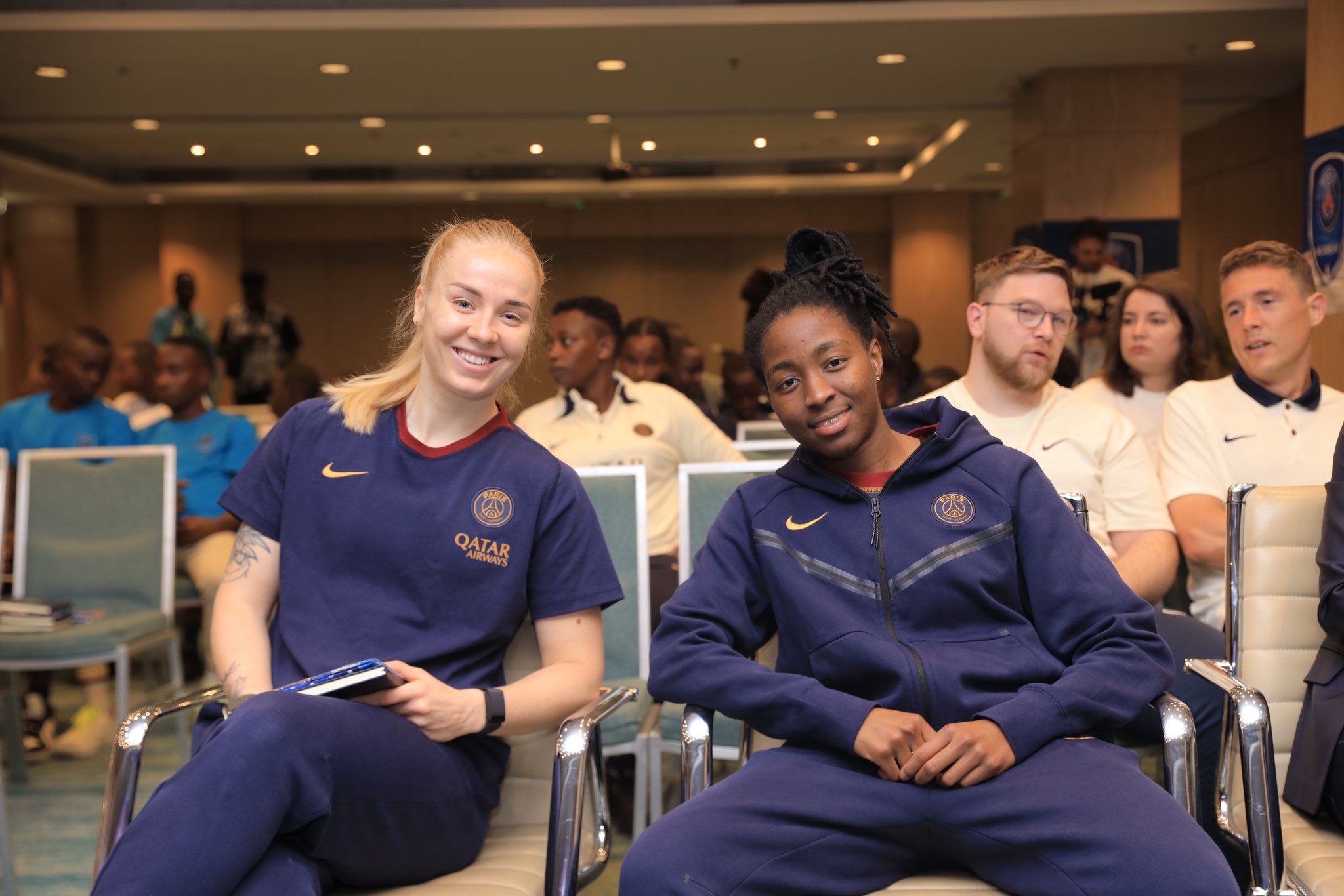 Paulina Dudek na Oriane Jean-François bari mu Rwanda muri gahunda yo guhugura abana batorezwa muri PSG Academy Rwanda ku by’umupira ariko no gusura ibyiza by’u Rwanda.