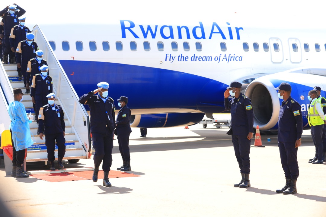Abapolisi bari bamaze umwaka mu kazi ko kugarura amahoro muri Centrafrique baraye bagarutse mu Rwanda. Basimbuwe na bagenzi babo bahagarutse mu Rwanda mu gitondo cya kare cyo kuri uyu wa Kane tariki 15, Mata, 2021.