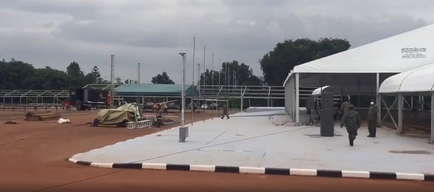 Video yashyizwe kuri Twitter n’ikinyamakuru NTV irerekana abantu bacicikana bashyira ibintu ku murongo kugira ngo uriya muhango uzabere ahantu hasa neza kandi hatekanye.