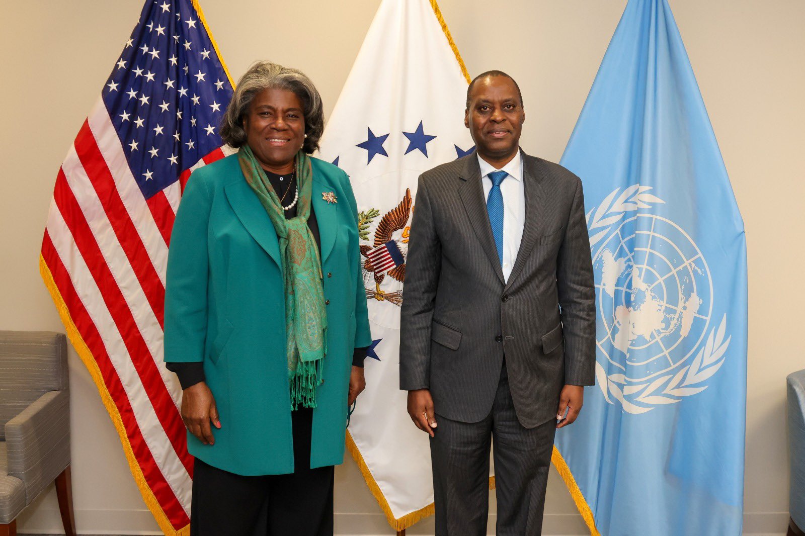 Amb Ernest Rwamucyo uhagarariye u Rwanda mu Muryango w’Abibumbye yaganiriye na mugenzi we uhagarariye Amerika muri uyu muryango witwa Amb Linda Thomas-Greenfield.