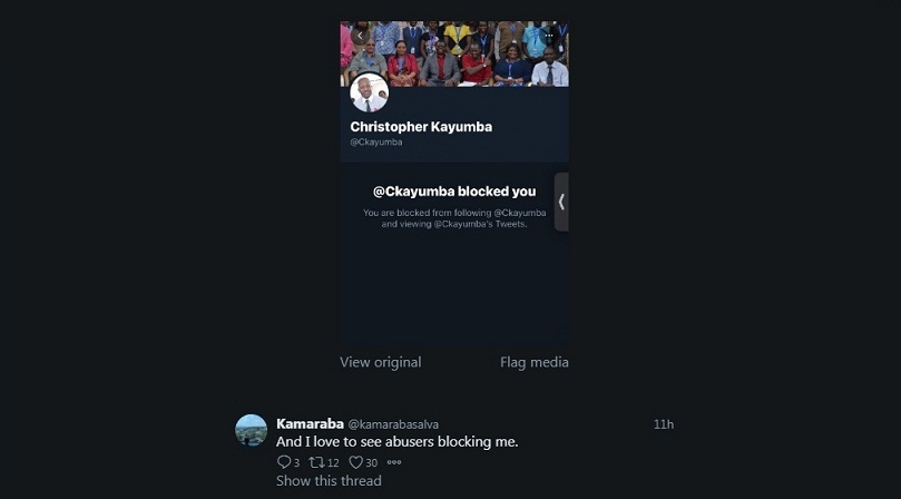 Kamaraba amaze kwandika biriya kuri Twitter, Dr Christopher Kayumba yahise afunga uburyo bwatumaga buri umwe abona ibyo undi yanditse.