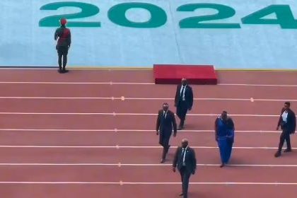 Paul Kagame uherutse gutorerwa gukomeza kuyobora u Rwanda yamaze kugera kuri Stade Amahoro aho yasanze Abanyarwanda barenga 45,000 bamutegereje ngo bumve indahiro y’inshingano baherutse kumutorera. Mb...