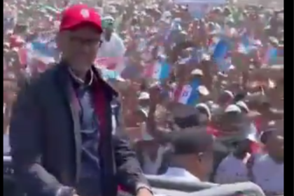 Paul Kagame umukandida wa FPR-Inkotanyi yageze mu Murenge wa Shyogwe mu Karere ka Muhanga aho abantu barenga 200,000 baje kumwakira ngo bumve kwiyamamaza kwe bityo bazamutore. Yasanze bamwiteguye bamw...