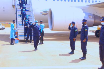 Abapolisi 160 bari bamaze hafi imyaka ine muri Sudani y’Epfo baraye bagarutse mu Rwanda. Bakiriwe na Assistant Commissioner of Police ( ACP) Yahaya Kamununga wari uhagarariye ubuyobozi bukuru bwa Poli...