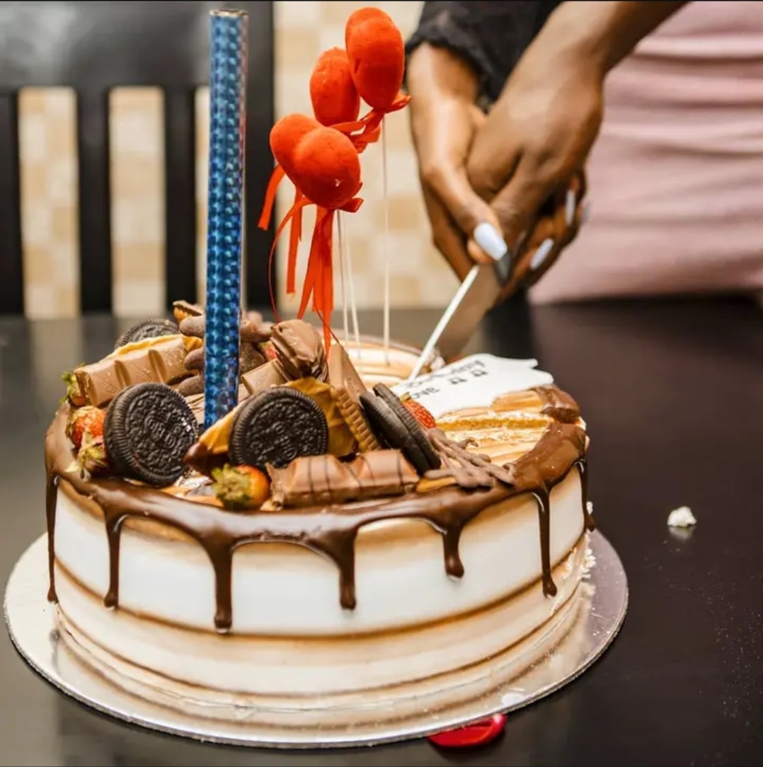 Yerekanye ifoto y’umutsima ari gukatana n’umukobwa ‘Aterekanye isura ye.’ Ati “Imbaraga z’urukundo. Mbega gutungurwa!.”