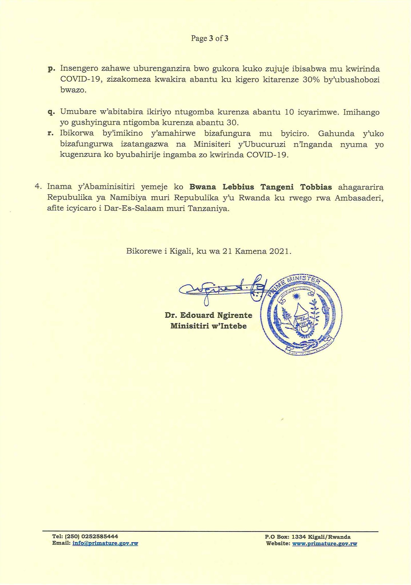 Ni umwe mu myanzuro yafatiwe mu nama idasanzwe y’abaminisitiri yateranye kuri uyu wa Mbere. Ni amabwiriza azatangira kubahirizwa ku wa Gatatu tariki 23 Kamena.