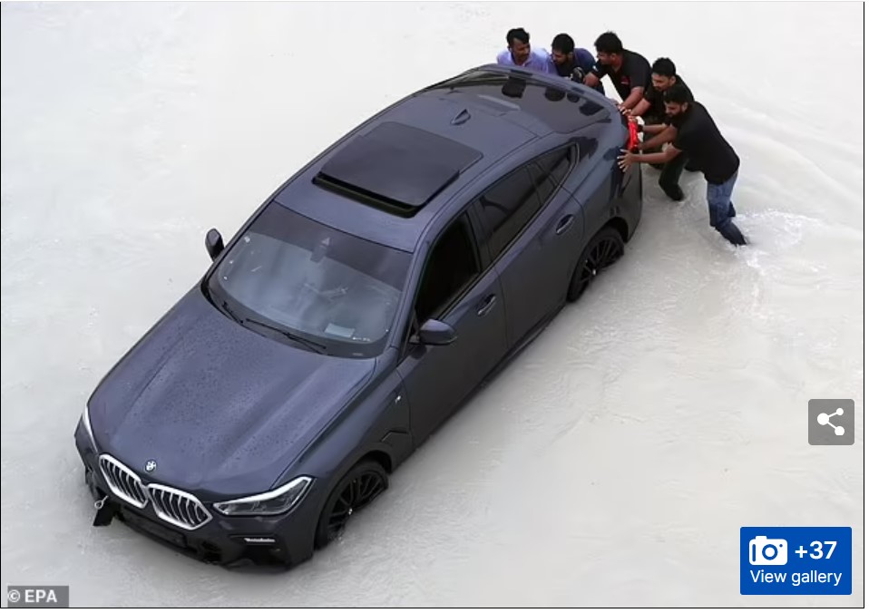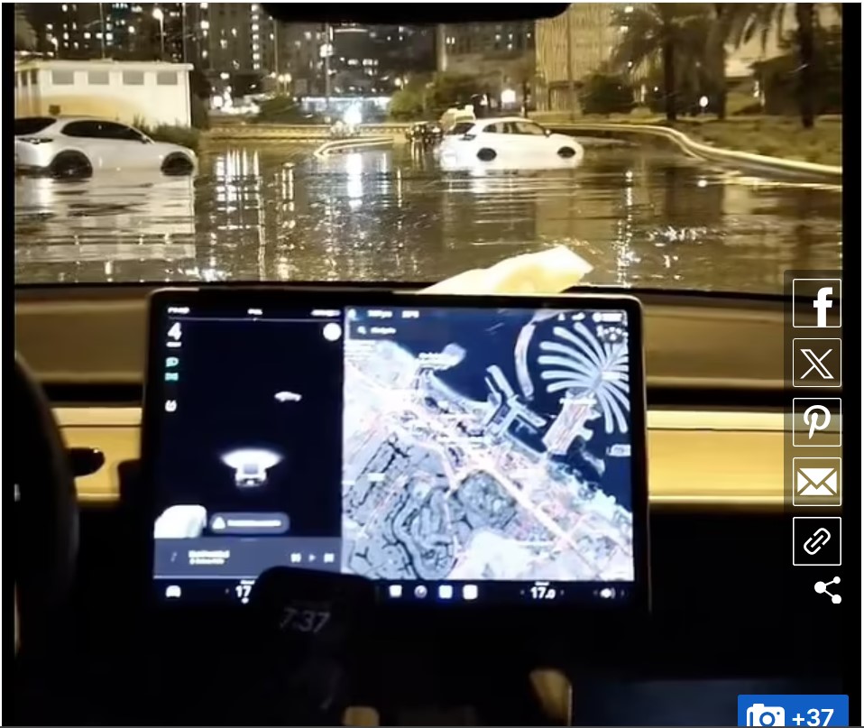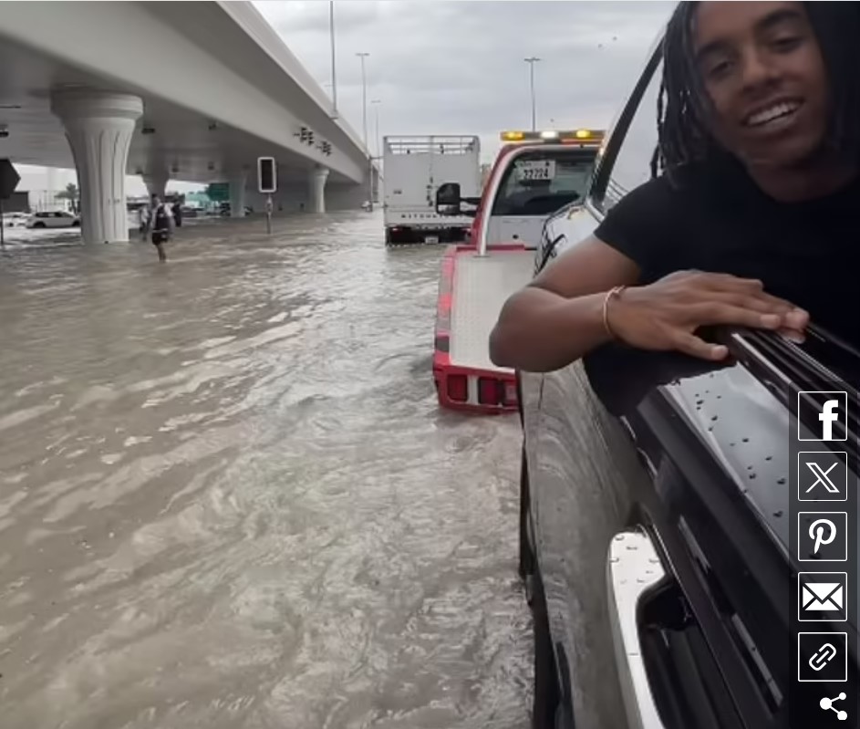 Kuri X hari amashusho yerekana imodoka zihenze zo mu bwoko bwa Royce Rolls ziganje muri uyu mujyi zarengewe n’amazi ndetse harimo n’iy’icyamamare kuri YouTube kitwa Jordan Welch cyifashe video cyaheze muri iyo vatiri.