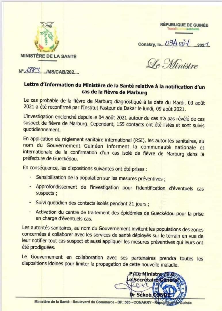 Abakora mu nzego z’ubuzima muri Guinea baratangaza ko hari umuntu wahitanywe n’indwara iterwa na Virusi yitwa Marburg kandi ngo iyi ndwara nidakumirwa hakiri kare ishobora kuzaba icyorezo kimwe na Ebola.