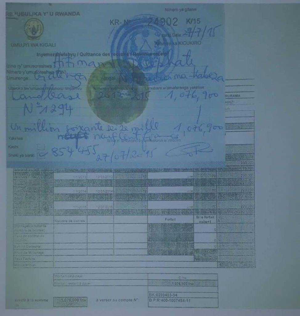 Taarifa yabashije kumenya ko ku ifishi y’icyemezo cy’ubutaka cyanditse kuri ESCOM, nta mugereka n’umwe ugaragaza ko ubutaka ari ubwacyo.
