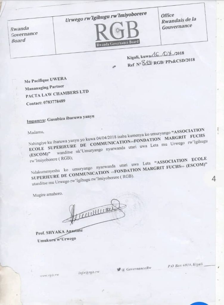 Hategeka mu izina rya ESCOM yasabaga urukiko gutesha agaciro icyemezo cy’ubutaka yahawe, undi ariko abwira urukiko ko ESCOM yasheshwe mu 2012 ndetse byemejwe n’Urwego rw’Imiyoborere, RGB, bityo ko ikirego cyayo kidakwiye kwakirwa.