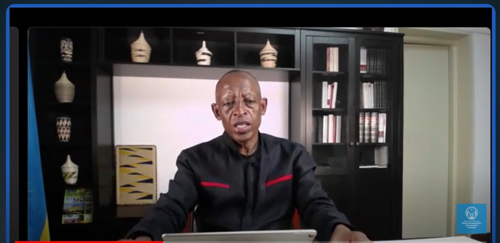 Intebe y’Inteko y’umuco n’ururimi Amb. Robert Masozera asaba Abanyarwanda bazi Ikinyarwanda kukigisha bagenzi babo.