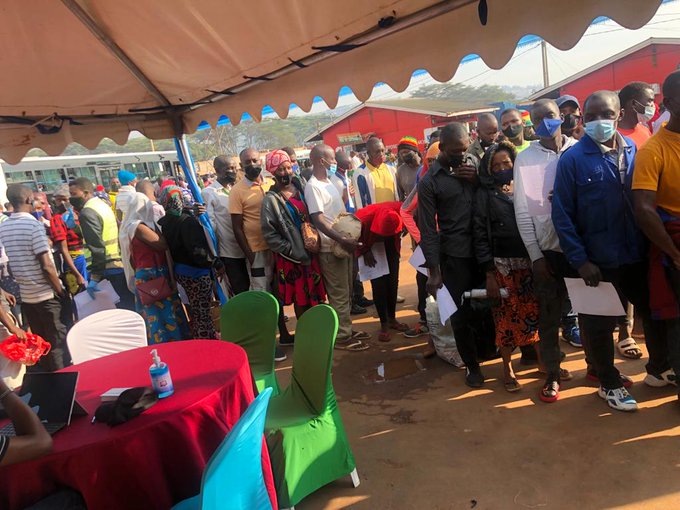 #MOHRwanda two weeks ago we struggled to cross 93%Covid19 vaccination rate among 18 years old and above in Kigali!Thinking beyond box #Vaccination steering committee decided catchup plan strategy!Meet clients near Bus stations in Kigali..Amazing attendance @CityofKigali pic.twitter.com/6UQr4QWaBZ