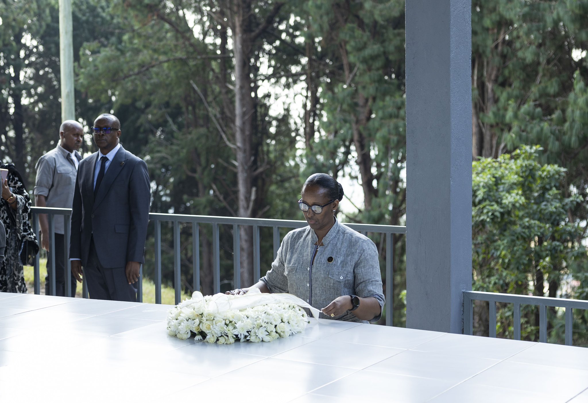 Madamu Jeannette Kagame yaraye yifatanyije n’abarokotse Jenoside yakorewe Abatutsi babaga muri Bisesero.