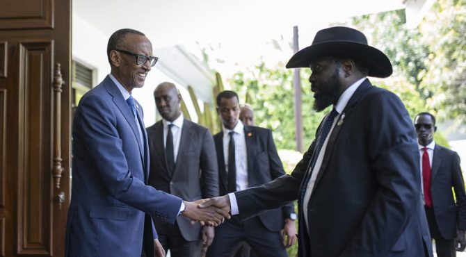 Perezida Paul Kagame yaraye yakiririye mu Biro bye mugenzi we wa Sudani y’Epfo, Salva Kiir, wageze mu Rwanda mu masaha ashyira igicamunsi cyo kuri uyu wa Kane taliki 22, Gashyantare, 2024. Abakuru b’ibihugu byombi baganiriye uko ibibazo biri mu Karere u Rwanda ruherereyemo byakemukira mu mizi yatumye bikura. Salva Kirr niwe uyoboye Umuryango wa Afurika … Continue reading Kagame Yakiriye Kirr Mu Biro Bye Baganira Ku Biri Mu Karere