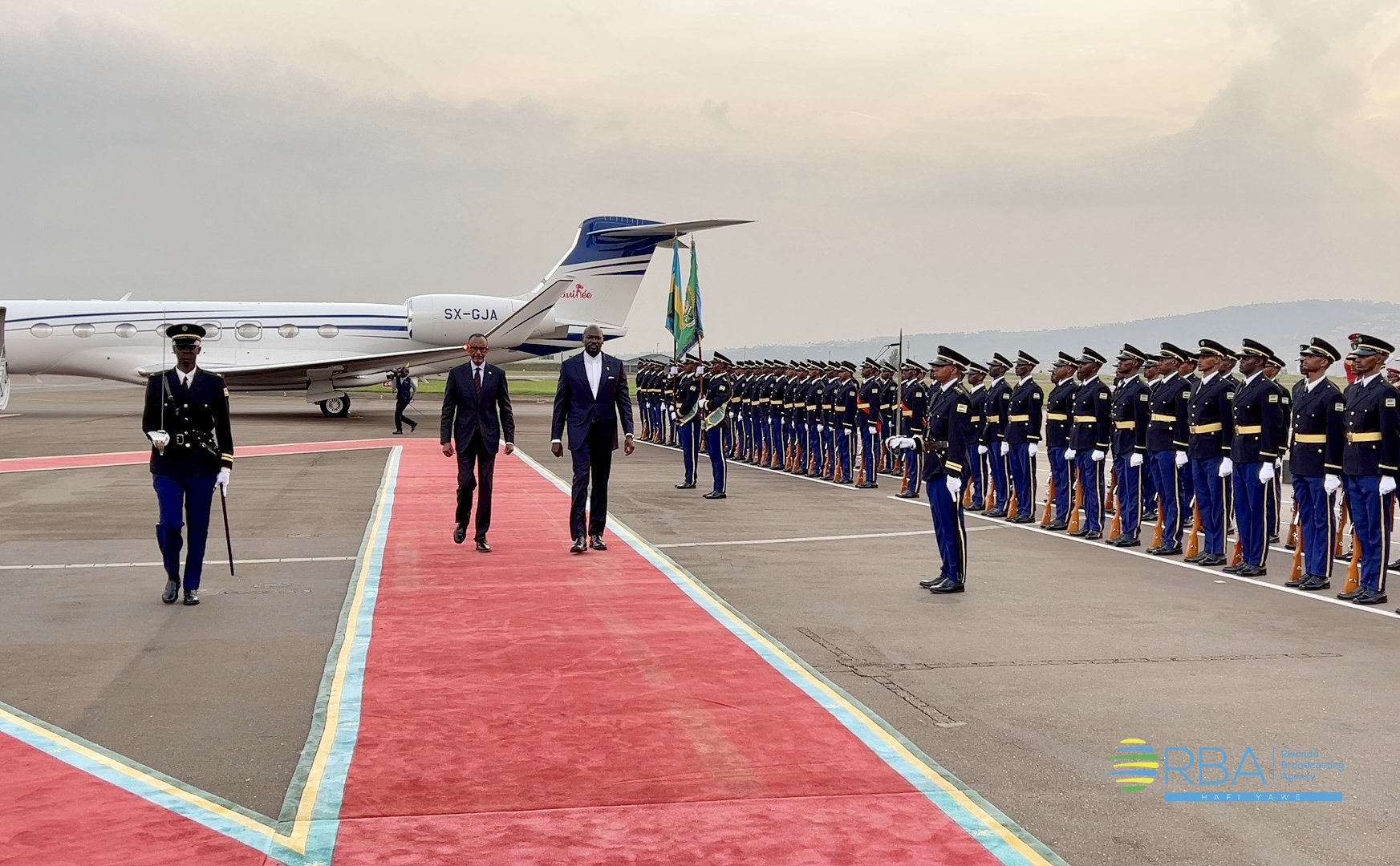 Perezida Paul Kagame yakiriye mugenzi we wa Guinée, Lt Général Mamadi Doumbouya, watangiye uruzinduko rw’akazi mu Rwanda.