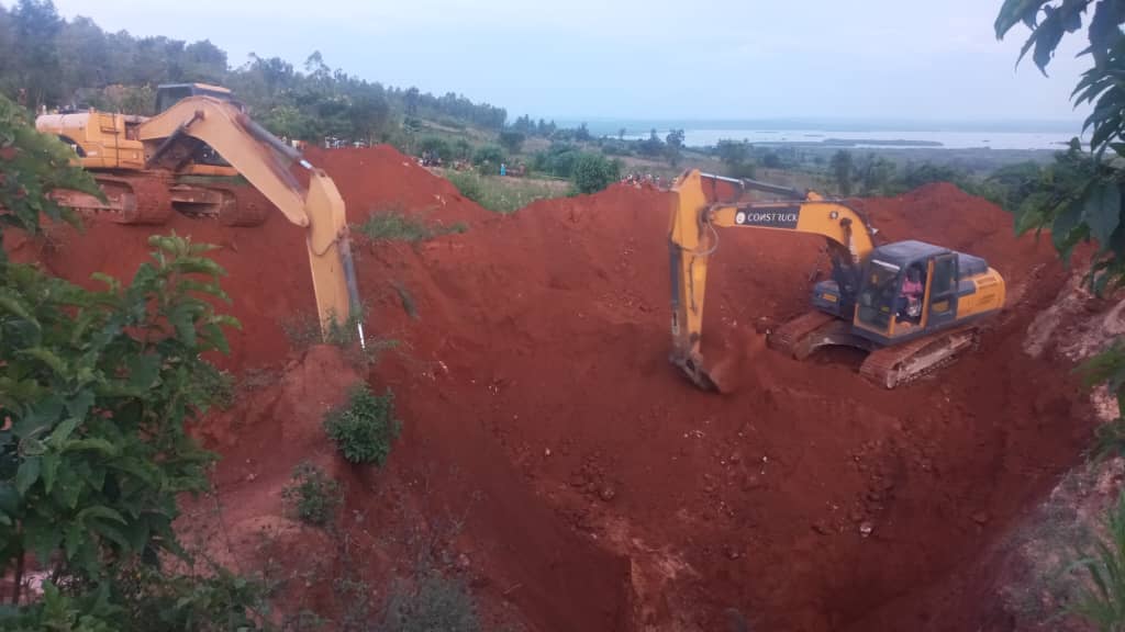 Abagabo batatu bacukuraga amabuye y’agaciro mu Mudugudu wa Murambi, Umurenge wa Rukoma, baheze mu Kirombe, hiyambazwa imashini zibavanamo.