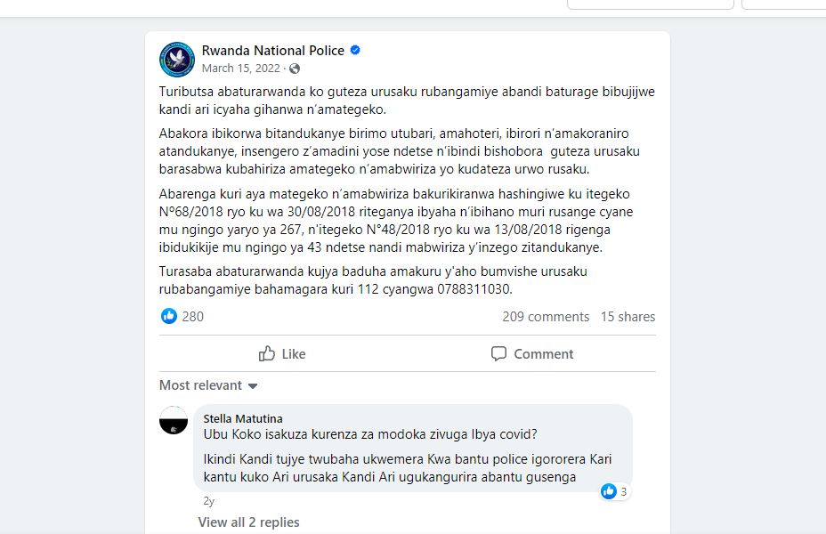 Mu mwaka wa 2014 nabwo ikibazo cy’urusaku cyabaye kinini, Polisi isohorera itangazo kuri paji yayo ya Facebook ryihaniza ababangamira abandi binyuze muri ubwo buryo.