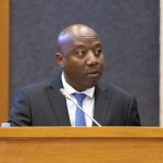 Akimara kugitsinda yacyishimiye akora ikimenyetso kigaragaza ko Abanye-Congo bari kwicwa ariko Isi icecetse idashaka kuvuga ku ntambara iri muri Repubulika Iharanira Demokarasi ya Congo.