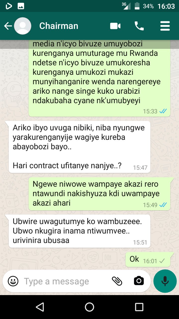 Mucyo yakomeje ati “Hanyuma nabwo nkora ukwezi sinishyurwa, ahubwo byongera ideni biba amezi, kugeza uyu munsi ntafata telephone yanjye yewe no kuri WhatsApp yaramblotse.”