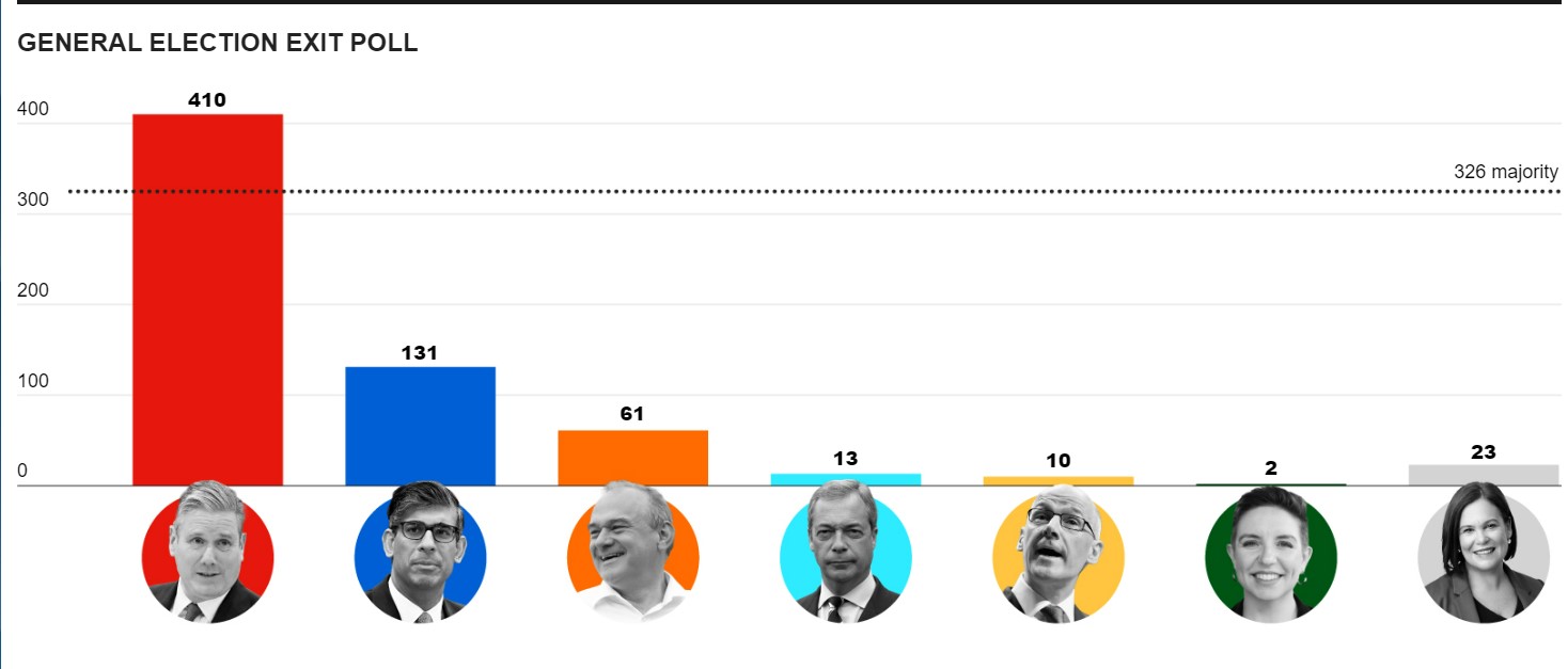Politiki y’Ubwongereza igiye kugira isura nshya nyuma y’uko ishyaka rya Minisitiri w’Intebe Rishi Sunak ritakaje imyanya mu Nteko ishinga amategeko, ahubwo bakiganza iy’irindi shyaka rikomeye ry’abakozi bita Labour Party.