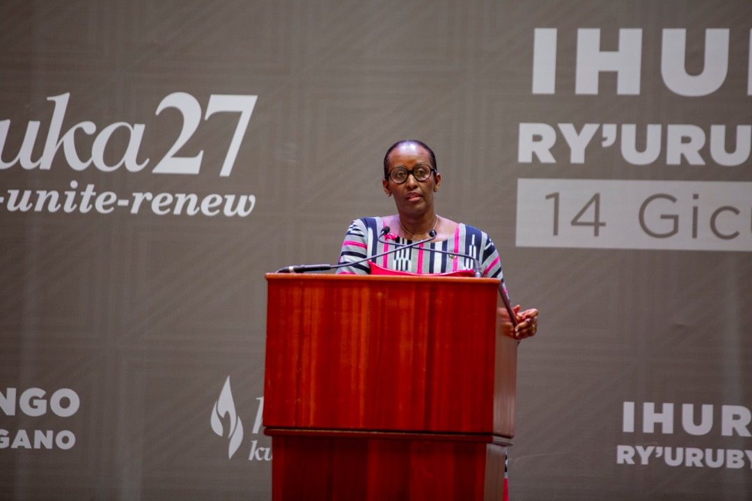 Jeannette Kagame yavuze ko urubyiruko rukwiye guharanira kubaka Ubunyarwanda, bwasenywe n’abateguye Jenoside ndetse bakayishyira mu bikorwa.