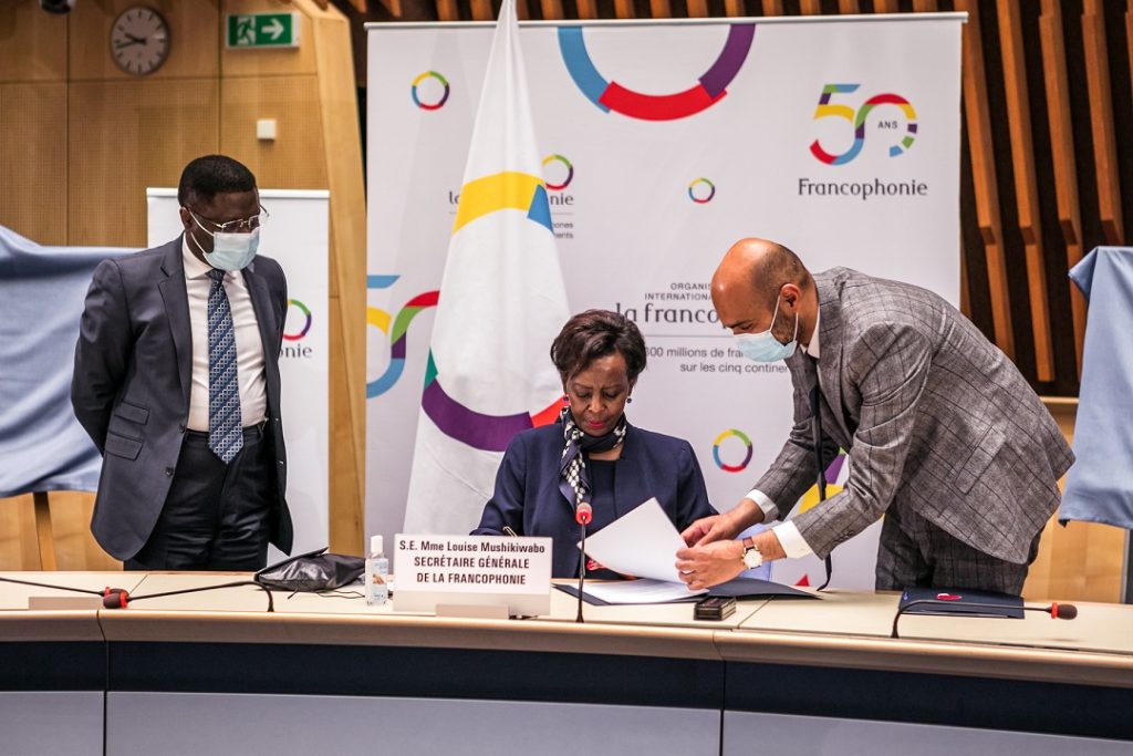 Madamu Louise Mushikiwabo yashyize umukono ku masezerano y’ubufatanye bw’Umuryango w’ibihugu bikoresha Igifaransa n’Ishami ry’Umuryango w’Abibumbye rishinzwe ubuzima, WHO/OMS agamije kugeza inkingo za COVID-19 mu bihugu bigize ‘Umuryango ayoboye.’
