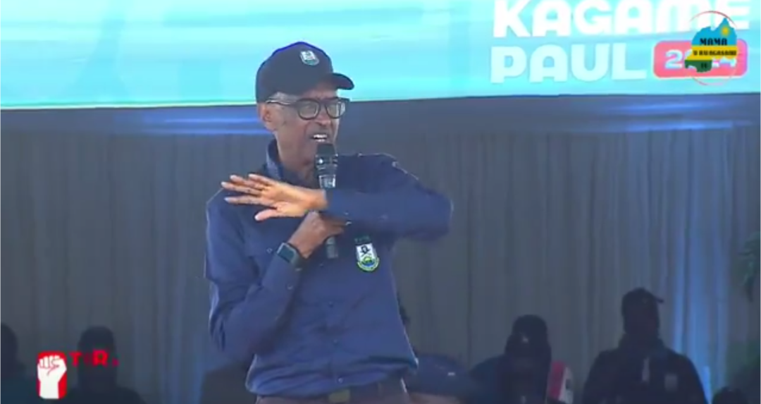 Paul Kagame yabwiye abaturage bari baje kumva uko yiyamamaza muri Nyamagabe ko nibamutora ko bazaba bafite umutekano n’amajyambere.