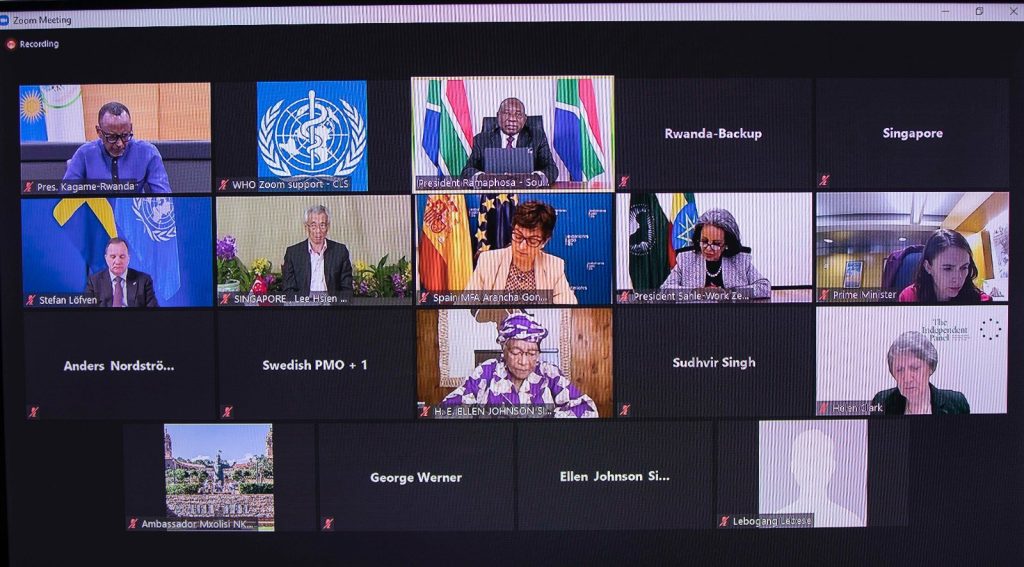 Hari mu kiganiro cyahuje abayobozi bo muri Afurika n’abandi bo hirya no hino ku isi mu rwego rwo kuganira k’uguhangana na COVID-19 binyuze mu gushyiraho ingamba zirimo no gukora inkingo zihagije abatuye Isi.