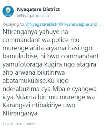 Nyuma yo guhamagara uvugwaho ruriya rugomo, akadusubiza mu magambo twanditse haruguru, twahamagaye Umuyobozi w’Akarere ka Nyagatare Bwana David Claudian Mushabe ngo agire icyo avuga ku bivugwa kuri uriya muyobozi ntiyatwitaba.