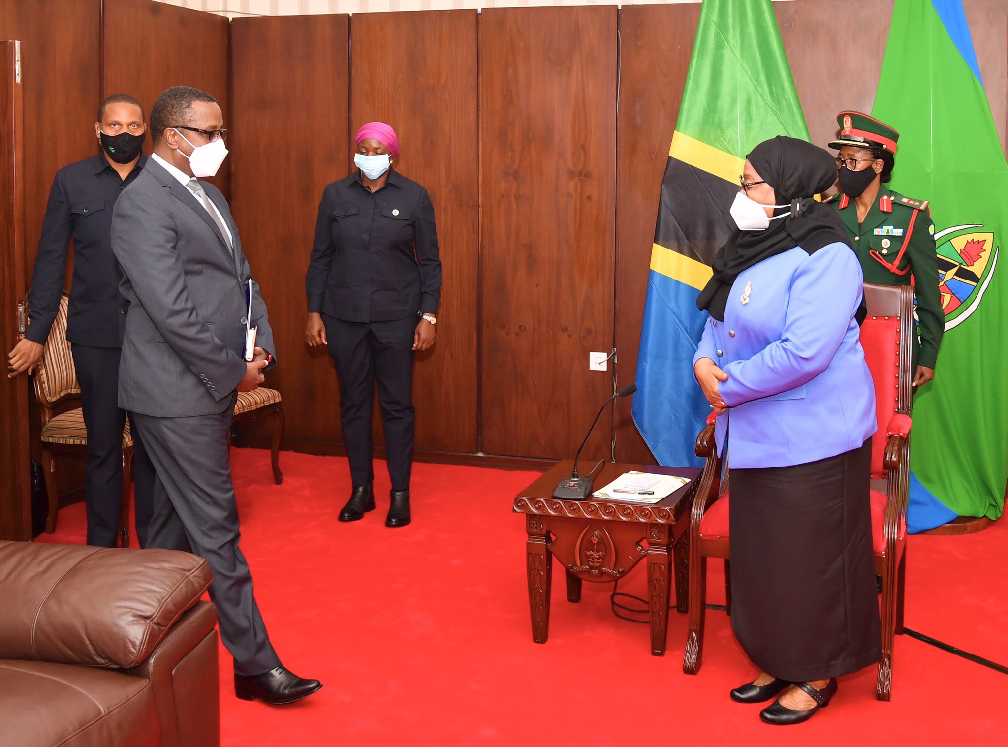 Dr Biruta kuri uyu wa Kane yakiriwe na Perezida Suluhu mu biro bye i Dodoma. Yari aherekejwe na ambasaderi w’u Rwanda muri Tanzania Maj Gen Charles Karamba.