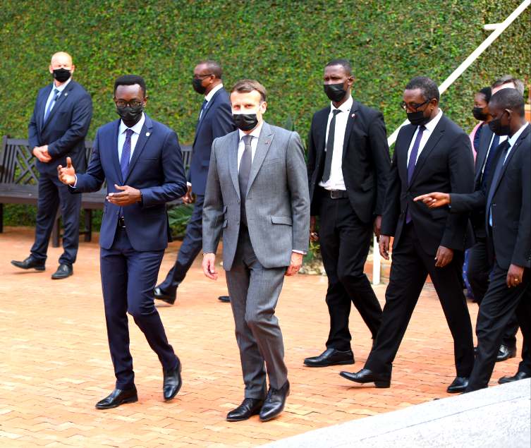 Macron yageze mu Rwanda mu gitondo cyo kuri uyu wa Kane, yakirwa ku kibuga cy’indege na Minisitiri w’Ububanyi n’amahanga, Dr Vincent Biruta. Yahise abanza kwakirwa na Perezida Paul Kagame muri Village Urugwiro.