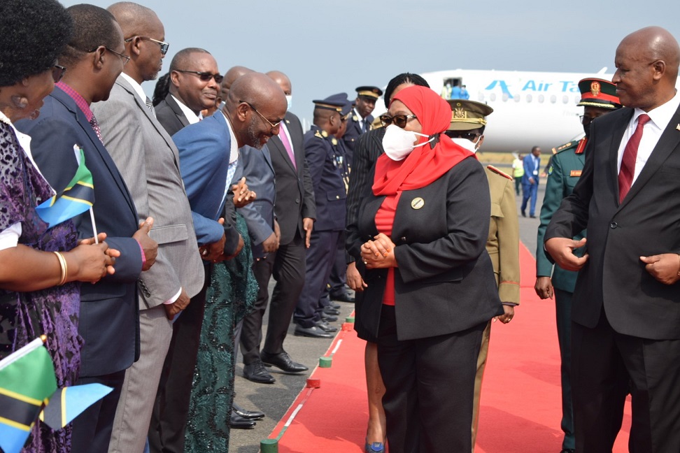 Ubwo yari ageze ku kibuga cy’indege i Bujumbura, Perezida Suluhu Samia Hassan yakiriwe na Visi Perezida w’u Burundi witwa Prosper Bazombanza, wahise amuherekeza bajya kwakirwa na Perezida Evariste Ndayishimiye.