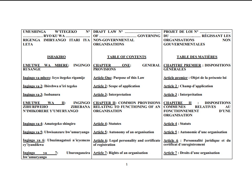 Kimwe mu biganirompaka bikomeye biri kubera mu Rwanda ni icy’umushinga w’itegeko rizagenga sosiyete sivile wamaze kugezwa mu Nteko ishinga amategeko utanzwe na RGB. Sosiyete sivile ivuga ko inama yatanze ngo ziwushyirwemo zitengagijwe uretse ebyiri gusa, RGB yo ikabihakana.