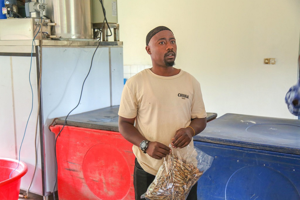 Mu rwego rwo kuwongerera agaciro no kuwirinda kwangirika, abo muri Koperative Projet Pêche babanza gushyira isambaza mu cyuma kizikonjesha.
