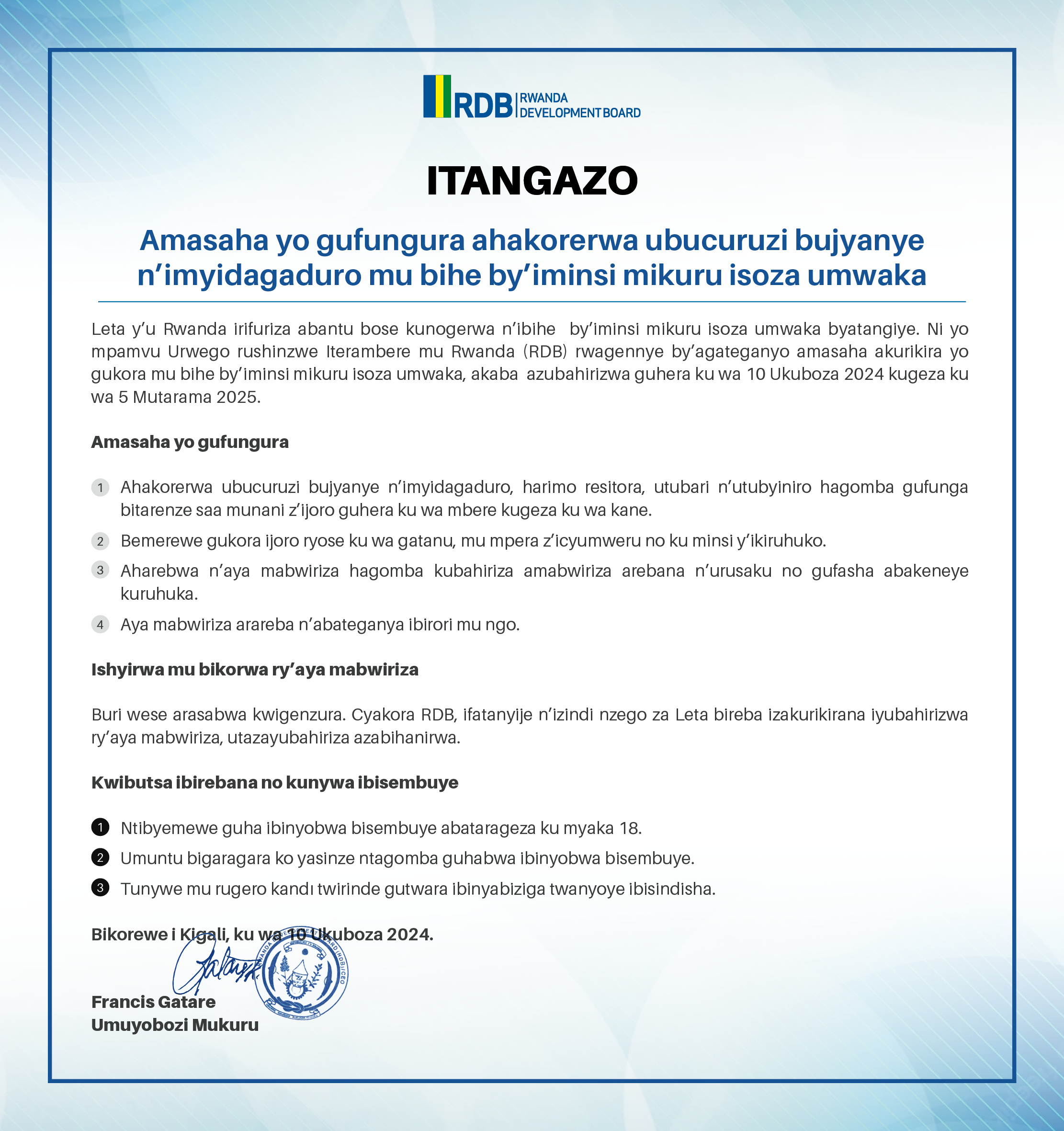 Itangazo rya RDB ryashyinywe n’Umuyobozi Mukuru, Francis Gatare, rivuga ko iki cyemezo gitangira gukurikizwa kuva kuri uyu wa 10, Ukuboza, 2024 kugeza tariki 5, Mutarama, 2025.