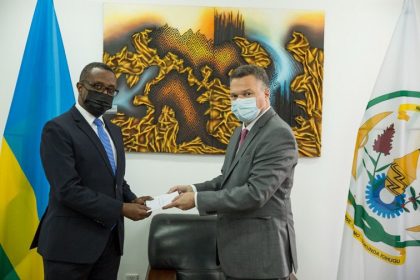 Kuva yemezwa ko ari we uzahagararira u Bufaransa mu Rwanda, Bwana Antoine Anfré nibwo bwa mbere yahuye na Minisitiri w’ububanyi n’amahanga w’u Rwanda, Dr Vincent Biruta. Yamugejejeho impapuro zimwemer...