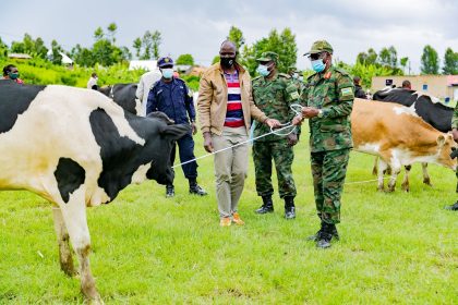 Major General Eric Murokore ari kumwe na Guverineri w’Intara y’Amajyaruguru, Bwana JMV Gatabazi bashyikirije abaturage bo mu murenge wa Cyanika mu Karere ka Burera inka 20 bagabiwe na Perezida Kagame....