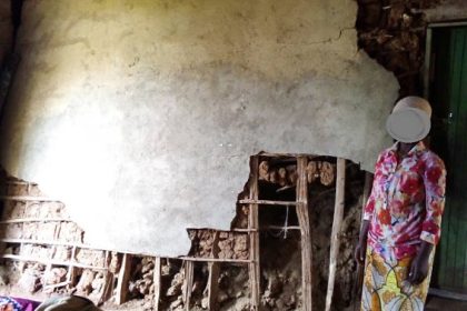 Amafoto y’inzu zubatswe na Croix Rouge y’u Rwanda mu Mudugudu wa Nganzo, Akagari ka Ntendezi, Umurenge wa Ruharambuga, yerekana ko zubatswe mu buryo budakomeye none zarasenyutse. Inkuta zazo zubakishi...