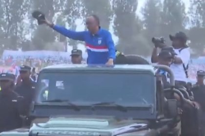 Kagame yageze kuri Stade ya Rusizi aho agiye kwiyamamaza nk’umukandida wa FPR-Inkotanyi. Yahasanze abaturage barenga 250,000 baturutse muri Rusizi, Nyamasheke, Rutsiro no mu bindi bice bihaturiye. Bam...