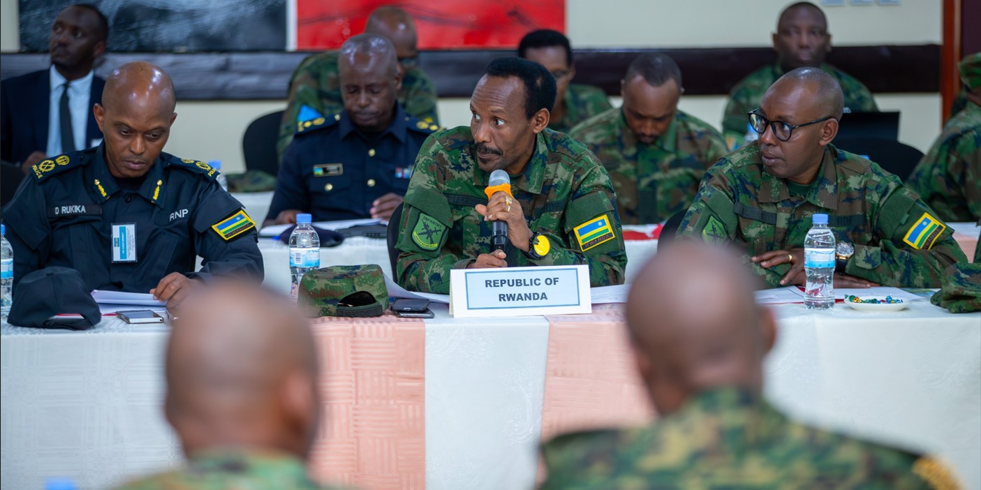 Abasirikare bakuru mu ngabo z’ibihugu bigize Umuryango w’Afurika y;Uburasirazuba, EAC, bahuriye mu Bugesera mu kigo cya gisirikare cya Gako baganira uko imyitozo yiswe USHIRIKIANO IMARA 2024 izagenda.