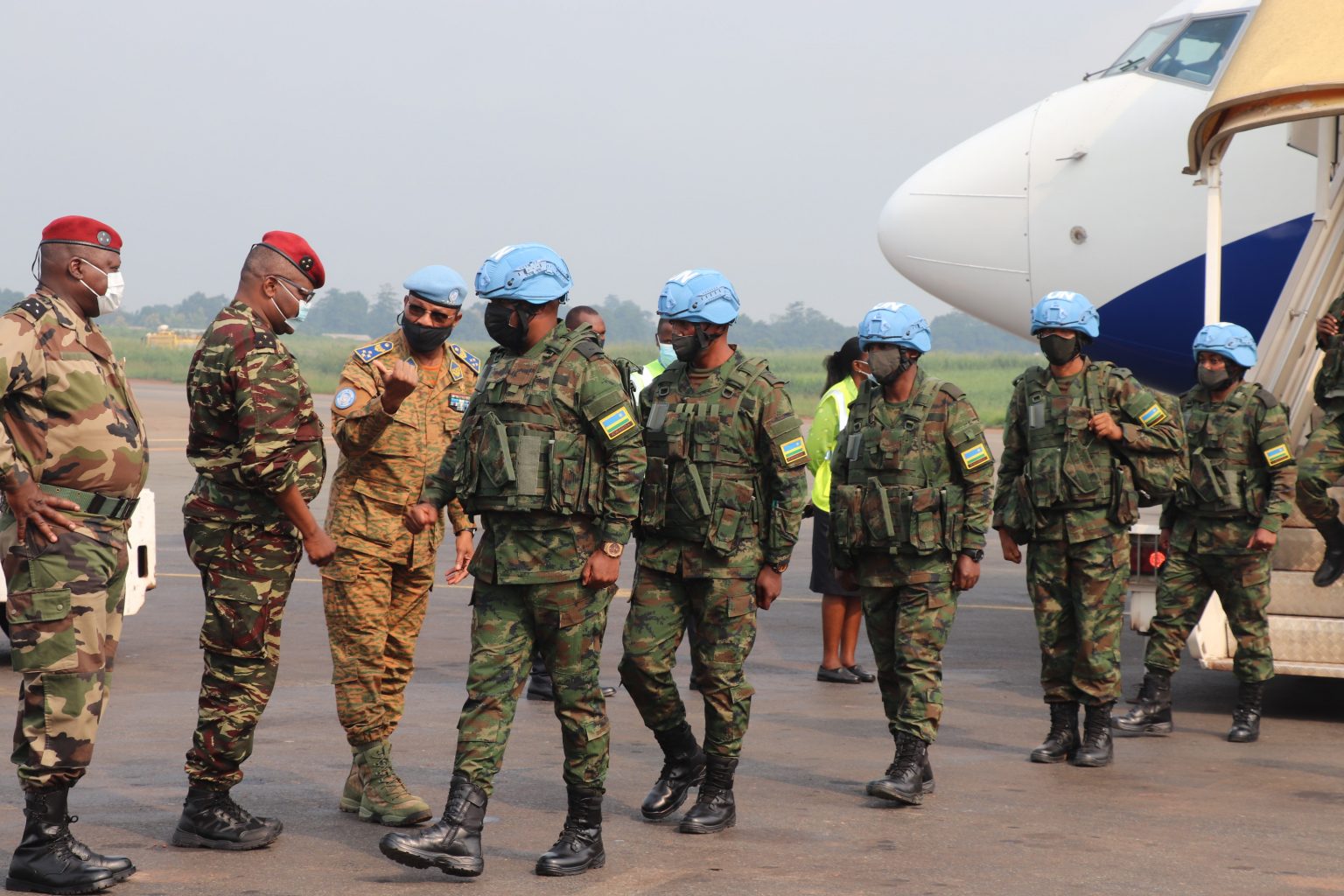 Bariya basirikare bamaze kugera i Bangui bakiriwe n’umuyobozi w’ingabo za MINUSCA Force Commander, Lt Gen SADIKI Traoré ari kumwe n’Umugaba mukuru w’ingabo za Centrafrique witwa Maj Gen Zephlin Mamadou.