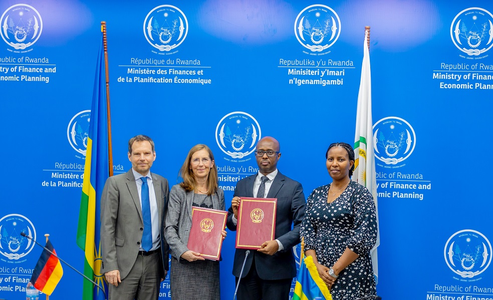 Amasezerano y’iyo nkunga yashyizweho umukono ku ruhande rw’u Rwanda na Minisitiri w’Imari n’Igenamigambi (MINECOFIN), Yusuf Murangwa na Ambasaderi w’u Budage mu Rwanda, Heike Uta Dettmann.