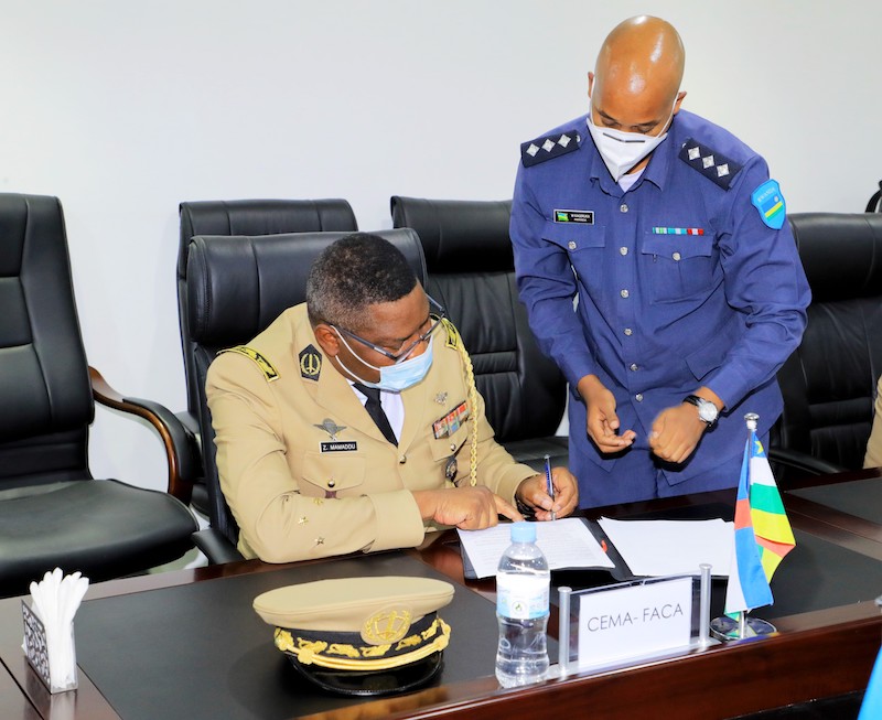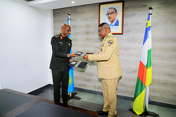 Ni muri uru rwego Umugaba mukuru w’ingabo za Centrafrique Major General Zéphlin Mamadou yahuye na mugenzi uyobora Ingabo z’u Rwanda, General Jean Bosco Kazura basinya amasezerano y’ubufatanye mu bya gisirikare.