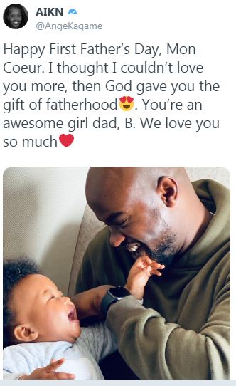 Mu Kinyarwanda buragira buti: “ Umunsi mwiza wahariwe aba papa mukunzi, Natekerezaga ko nta gukunda birenze uko byahoze, ariko Imana yaduhaye umugisha uba Papa w’umukobwa wacu w’igitego. Turagukunda cyane.”