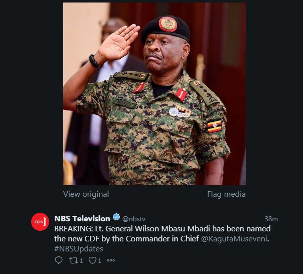 Lieutenant General Wilson Mbasu Mbadi yagizwe Umugaba mukuru w’ingabo za Uganda. Ni icyemezo cyafashwe na Perezida Yoweli Museveni, akaba ari n’Umugaba w’ikirenga w’ingabo za Uganda, UPDF.