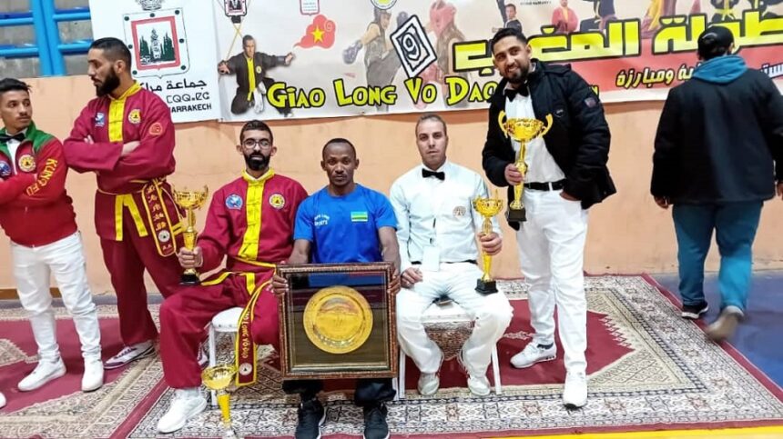 Uwo ni Emile Ndagijimana usanzwe ari umutoza akaba n’umukinnyi w’umukino njyarugamba wa Kung-Fu waraye wegukanye igikombe mu marushanwa yari amaze iminsi abera muri Maroc.