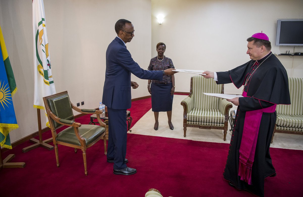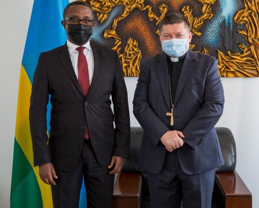 Mgr. Andrzej Józwowicz wari Intumwa ya Papa mu Rwanda yarangije Manda ye mu Rwanda. Mbere yo gusubira i Vatican ngo abone gukomereza i Tehran muri Iran yakiriwe na Minisitiri w’ububanyi n’amahanga w’u Rwanda, Dr Vincent Biruta bagirana ibiganiro.