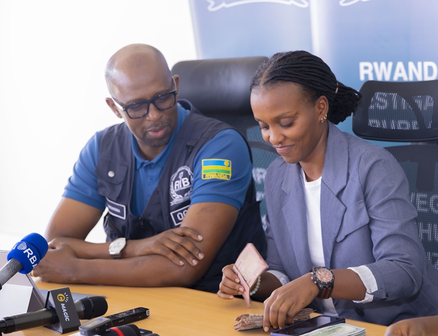 Nibwo abagenzacyaha bagiye basanga yaratabye ayo madolari barayafata barayegeranya baza no gusanga hari amafaranga y’u Rwanda yari yayavunjishijemo nayo barayafata bayasubiza nyira yo.